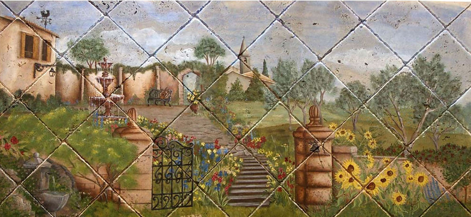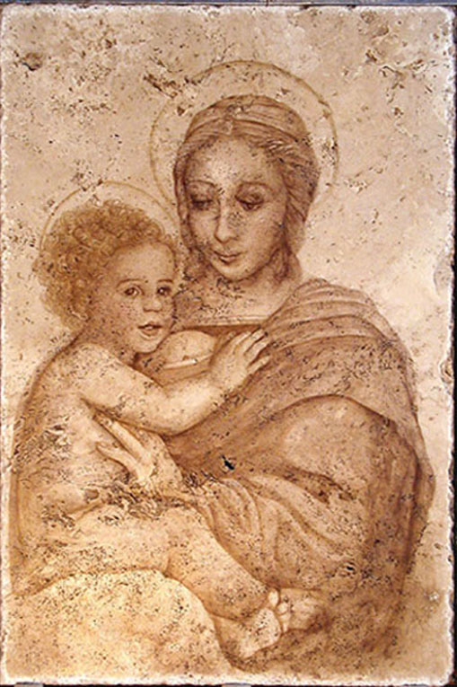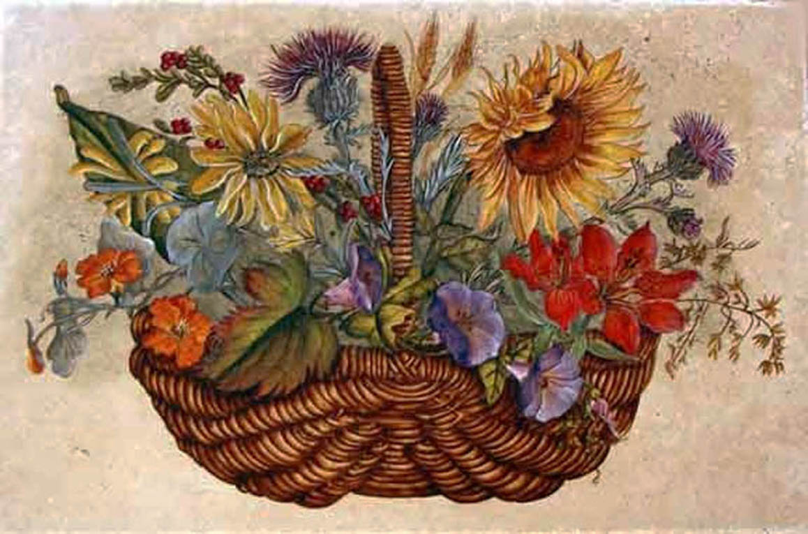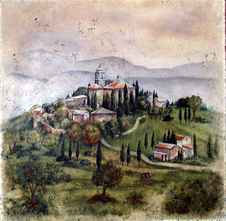 After moving to Southern California in 1972, she started painting, copying the great masters and experimenting with a variety of techniques and media. In 1980, she opened an art studio where she and her staff created large tile productions, murals in tile and stone and major works of art on canvas and wood. Her paintings have been installed in two California missions, multiple hotels, churches, restaurants, and beautiful homes across the United States.